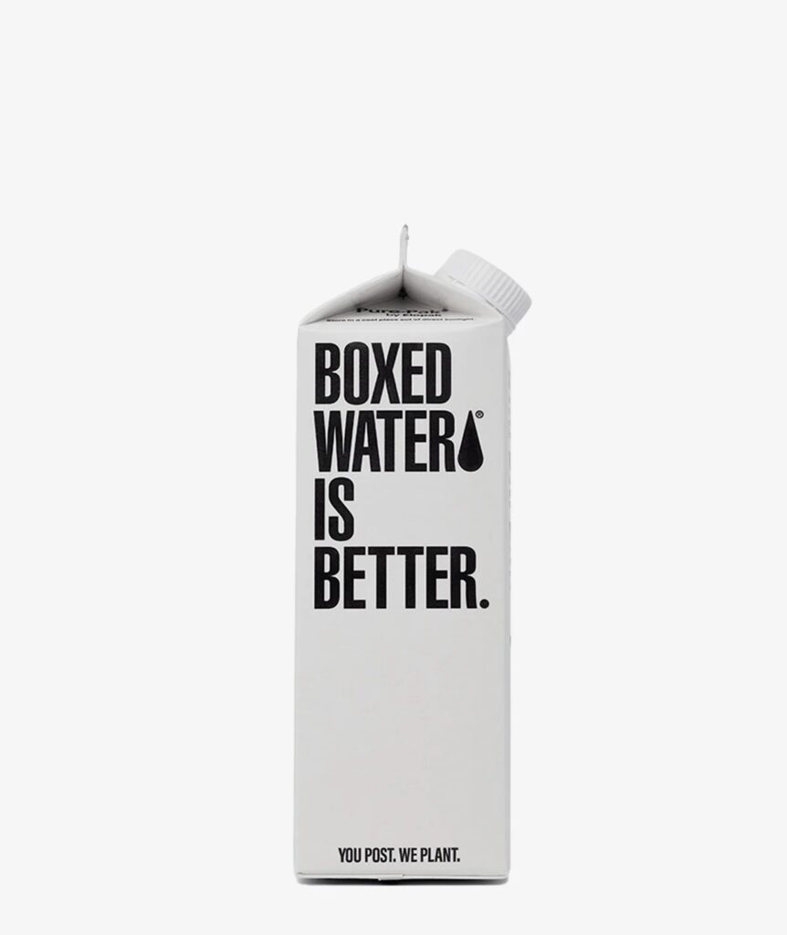 2009年にミシガン州で設立された「Boxed Water」は、ミニマルなモノクロデザインと明確な環境メッセージを特徴としています。パッケージは92%が再生可能素材で構成され、1本の販売につき2本の植樹を行う独自のプログラム「Project Box」を展開しています。